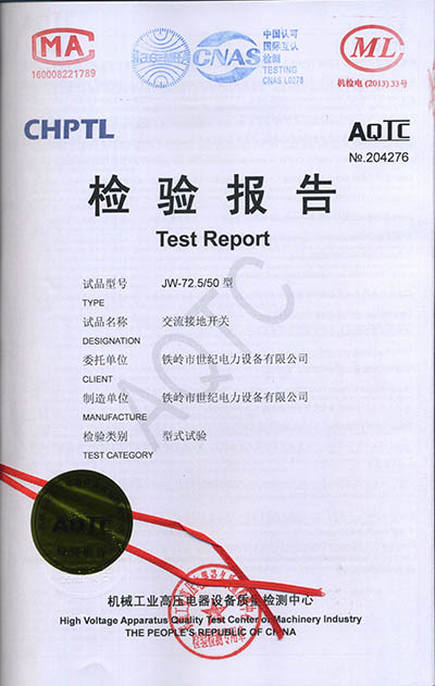 交流接地開關(guān)檢驗報告