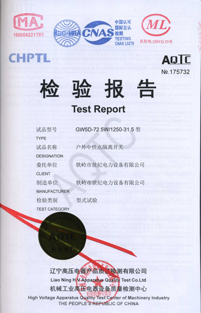 戶(hù)外中性點(diǎn)隔離開(kāi)關(guān)檢驗(yàn)報(bào)告